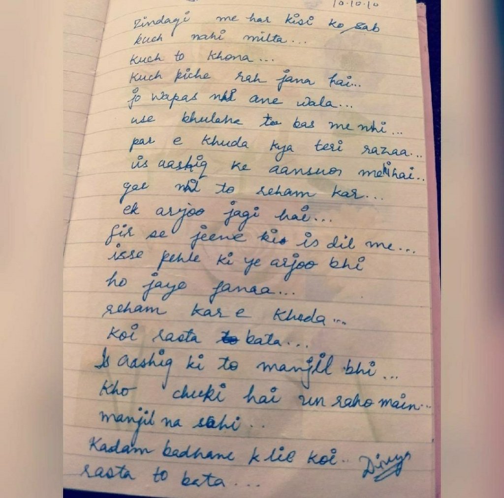 10 October 2010. I have been writing since I was in school. I used to write pages in one go, in the flow. Asking why is the world this way, why humans react so much. That time I was full of questions and curiosity, now I have answers..
