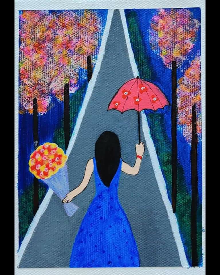 I came in touch with art from early childhood, I loved drawing, I love watching kids art hour shows on TV. My mom used to give us sketching assignments, I used to take craft competitions in my school so seriously. My Nani put me to embroidery. I chose to learn to make soft toys, emboss paintings and Mehandi on my own. I was introduced to painting with my Maasi’s high-grade watercolours.