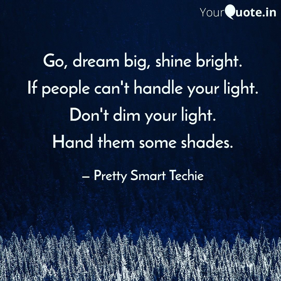 Let the darkness fall out because of your light..never dim your light. Show the world your true shine.